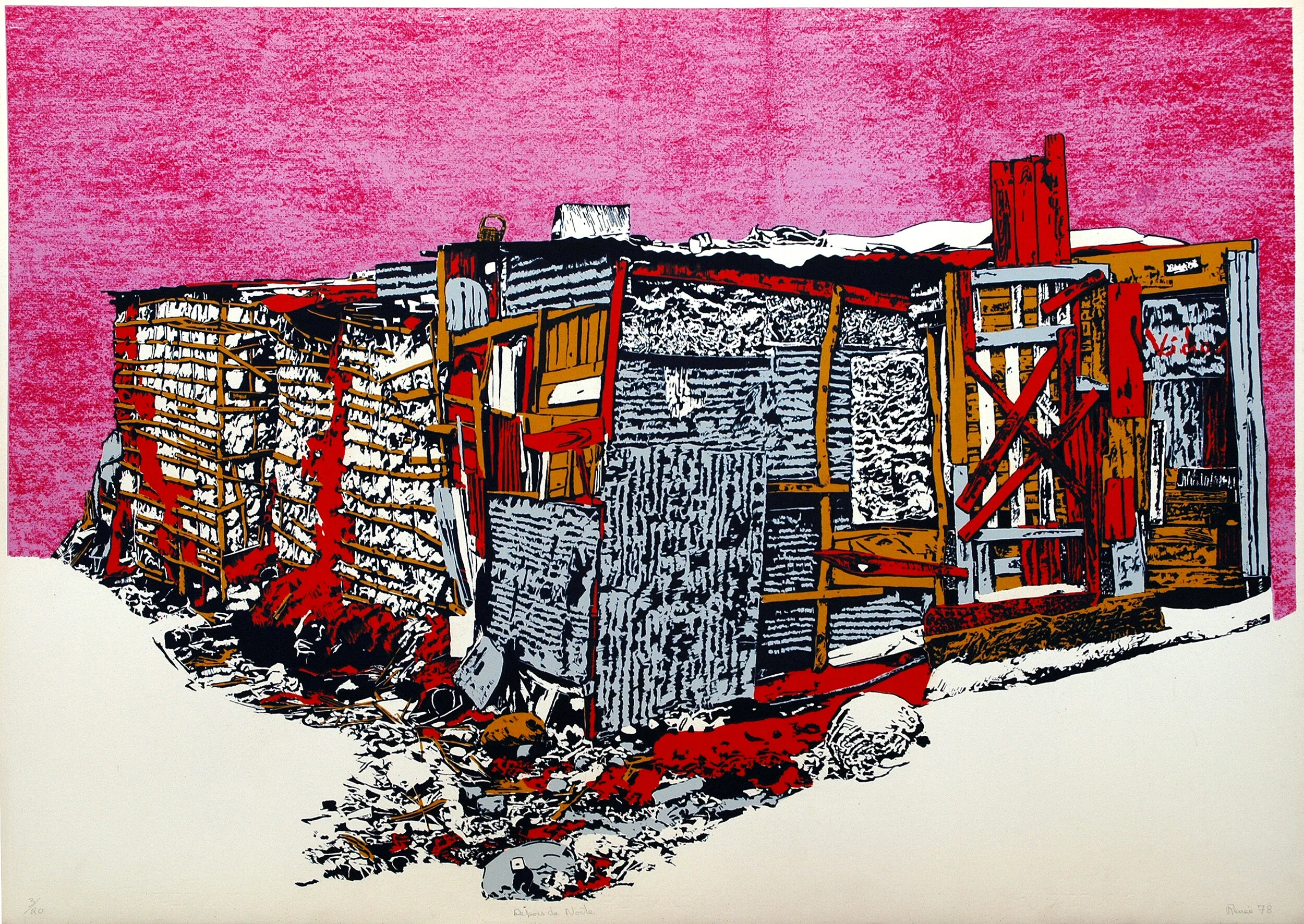 In Luanda the Musseques are mixed with the modern buildings. They are without color. As an artist, I have painted them as an interpretation of the abrasing sun.
